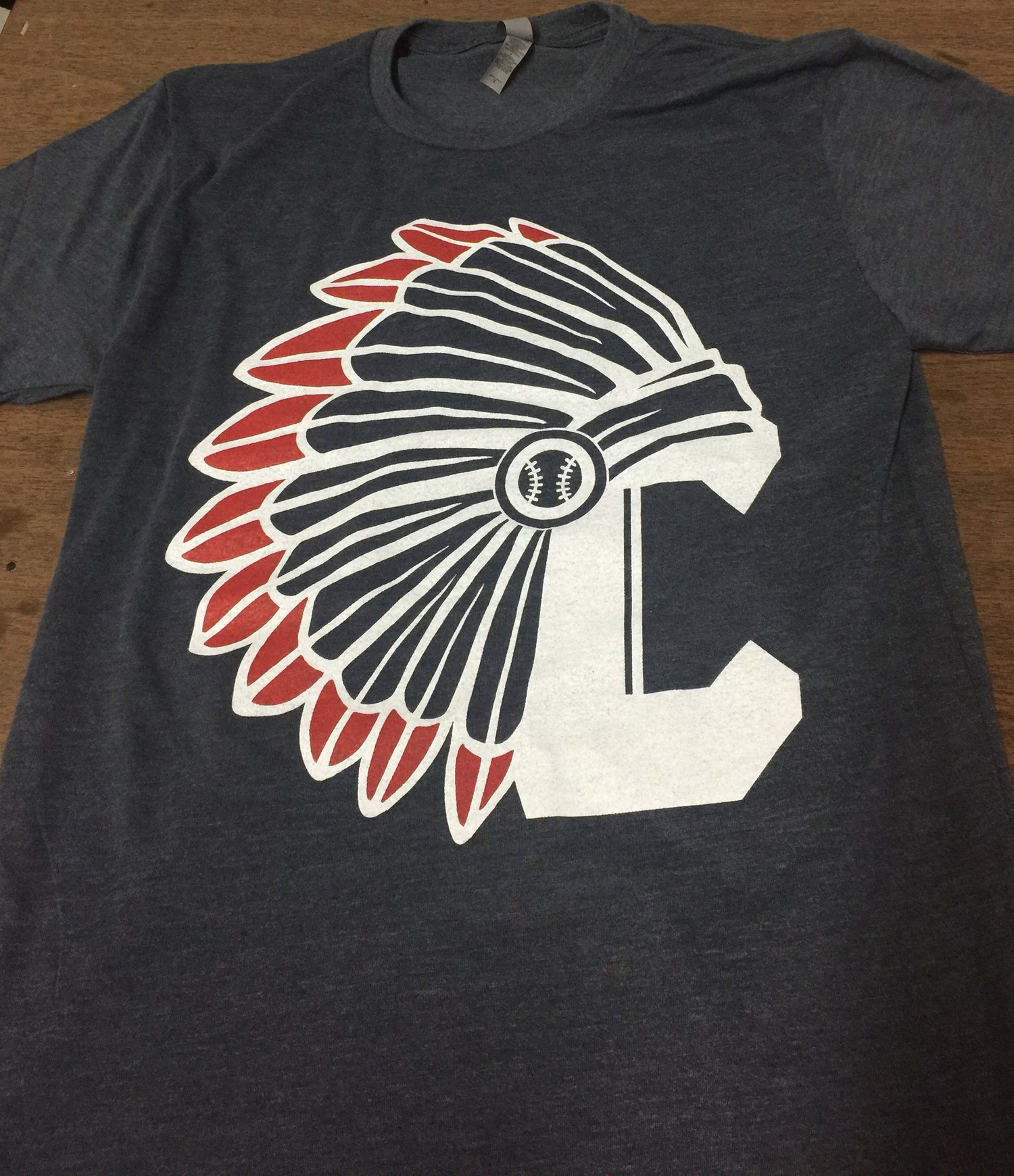 Cleveland's Newest Indians T-shirt is here. The new Indian's C blue Tri-blend shirt is here! With Cleveland Taking the AL pennant we figured it was time for some new Tribe Gear. Printed in Cleveland, the city of champions!